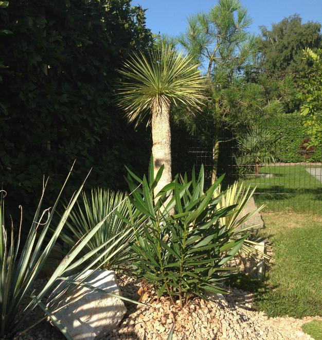 Zie ik het trouwens goed en is je exotenvirus overgeslagen naar de buren? Ik zie daar volgens mij een Trachycarpus staan?