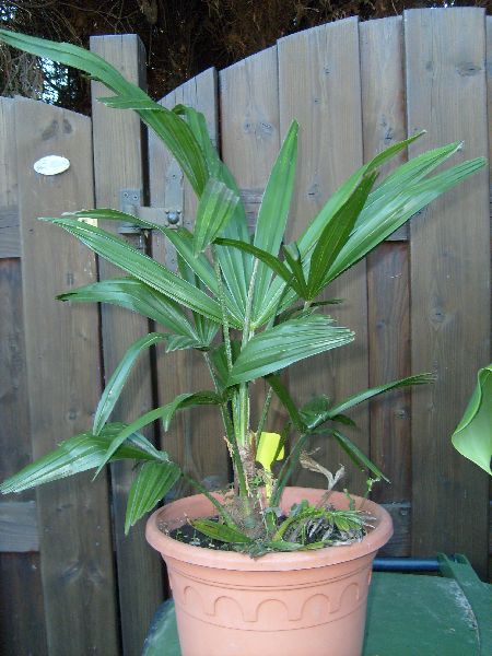 Die in de vollegrond had wel beginnende speerrot en ik denk dan ook dat deze niet zo hard is als een Trachycarpus fortunei.