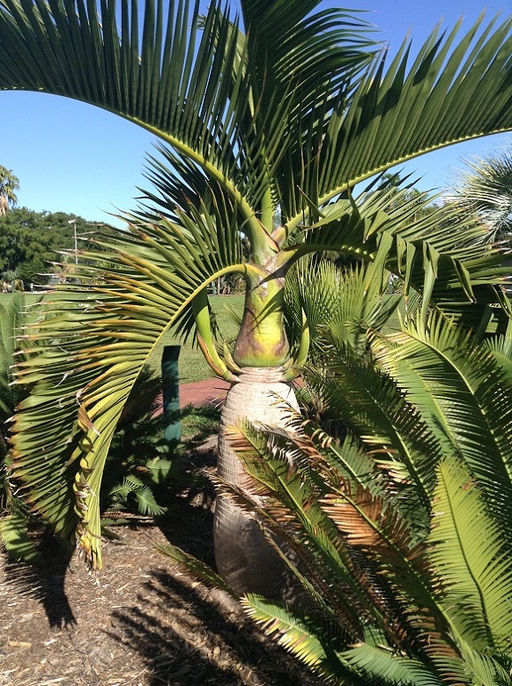 vwb de Hyophorbe: plant was gelabeld als een 'H. lagenicaulis' en heeft de flessevorm. Bovendien is die oranje/brons gloed op de bladstelen nogal variabel naar het schijnt. Ik laat het voorlopig even bij de pure vorm.