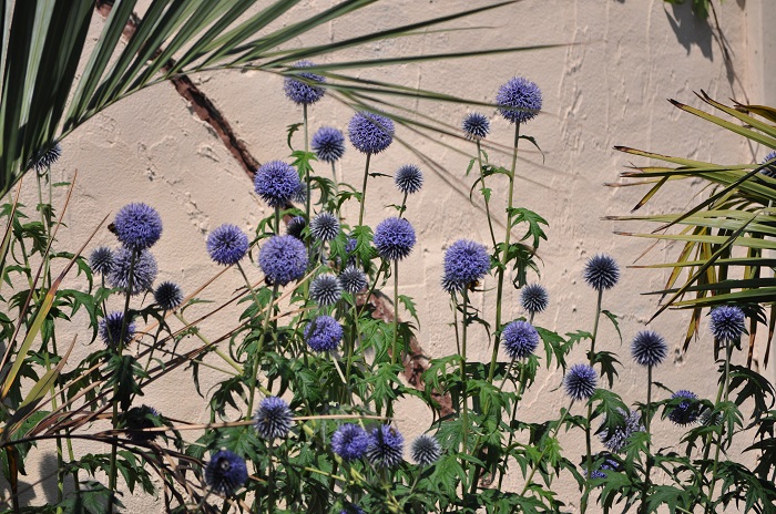 Dag Rob, inderdaad goed gezien, de planten die bloeien zijn voornamelijk blauw aangevuld met wit en geel en paars . Door enkele kleuren krijg je meer rust in de tuin. Bovendien is blauw een koele kleur, daardoor lijkt de tuin groter, De hoofdkleur groen (palm) probeer ik te combineren met blauwe of witte bloemen in combinatie met het blad.De bladeren hebben bij mij de voorkeur, deze moeten mooi, groot of aantrekkelijk zijn. Het is dan de kunst om de juiste combinatie te vinden. Bijvoorbeeld de sierui (paars)die in het voorjaar omhoog schiet boven het blauw-grijze groot blad van een hosta. groetjes Herman