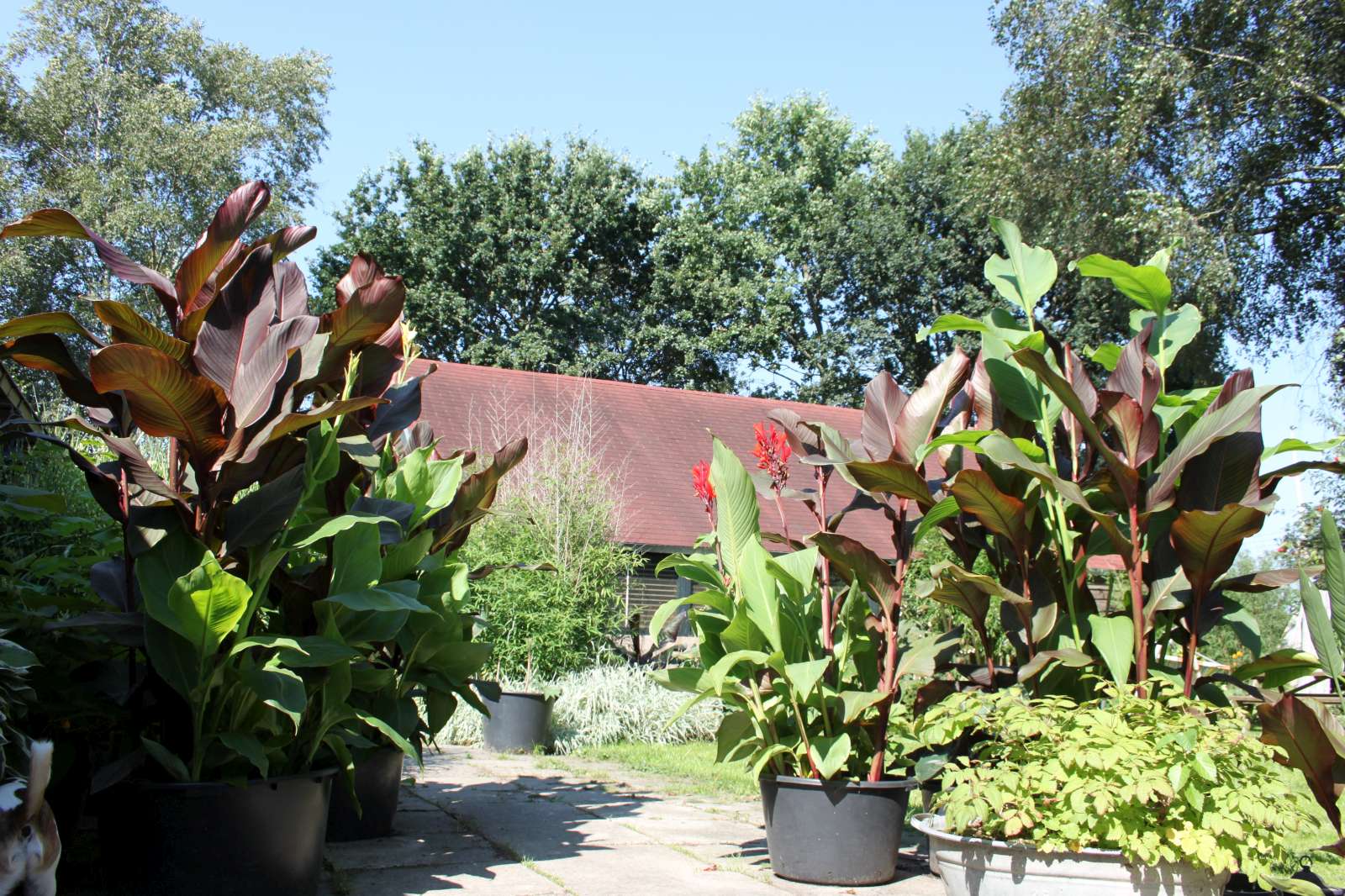 Ik moet wel bekennen dat mijn kennis van de tropische tuin helaas niet heel groot is. ( Er staan 4 paarden achter het huis die de meeste tijd EN ruimte opslokken ) Maar ik doe dapper mijn best om de overige ruimte op te vullen met allerlei soorten bamboe, canna's , bananen en leuke planten waarvan ik GEEN idee heb wat het is. Maar zodra het een groot blad heeft of een mooie structuur kan ik het niet na laten om te kopen en probeer het vervolgens in leven te houden.
