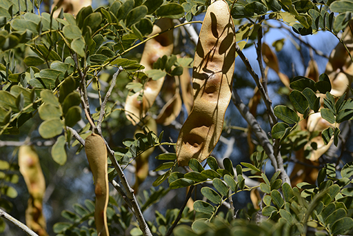 De onderste foto lijkt me een Acacia. Zwarte (of zwartbruine) zaden in de peul? Dan moet het 'm zijn.