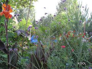 Mijn excuus voor de kwaliteit het stamt nog uit de tijd dat ik nog nooit van overbelichting had gehoord. Dit jaar heeft de nieuwe tuin vooral dienst gedaan als moestuin. Door de rode boerenkool en de Ricinus en tetrapanax was het voor een eerste jaar wel aardig tuintje zonder dat er budget voor was. Zal later nog wel nieuwe foto's posten