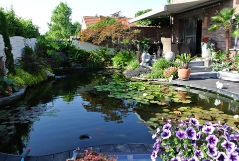 De woning heb ik inmiddels verkocht, hierbij een foto van het vijver terras van de nieuwe tuin ongeveer 4 jaar geleden aangelegd,