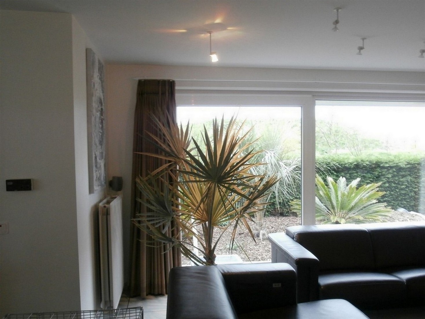Prachtige palm op een prachtige plek! binnen overwinteren is echt veel beter en goed te doen voor zo'n licht raam!