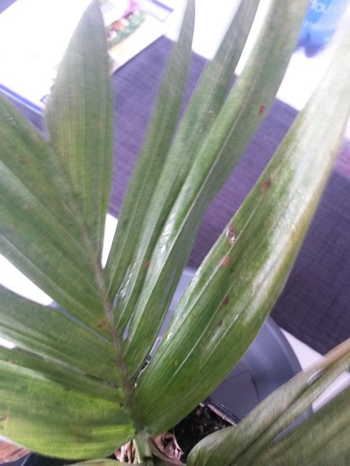 hoi iedereen , ik heb al een half jaar een Archontophoenix alexandrae , ik geef hem altijd regelmatig water en zet hem aan het raam aan de zuidkant voor de zon , nu vind ik dat de bladeren er nogal dof beginnen uit te zien en ook rare puntjes op het blad , misschien is het niets maar vind het toch raar