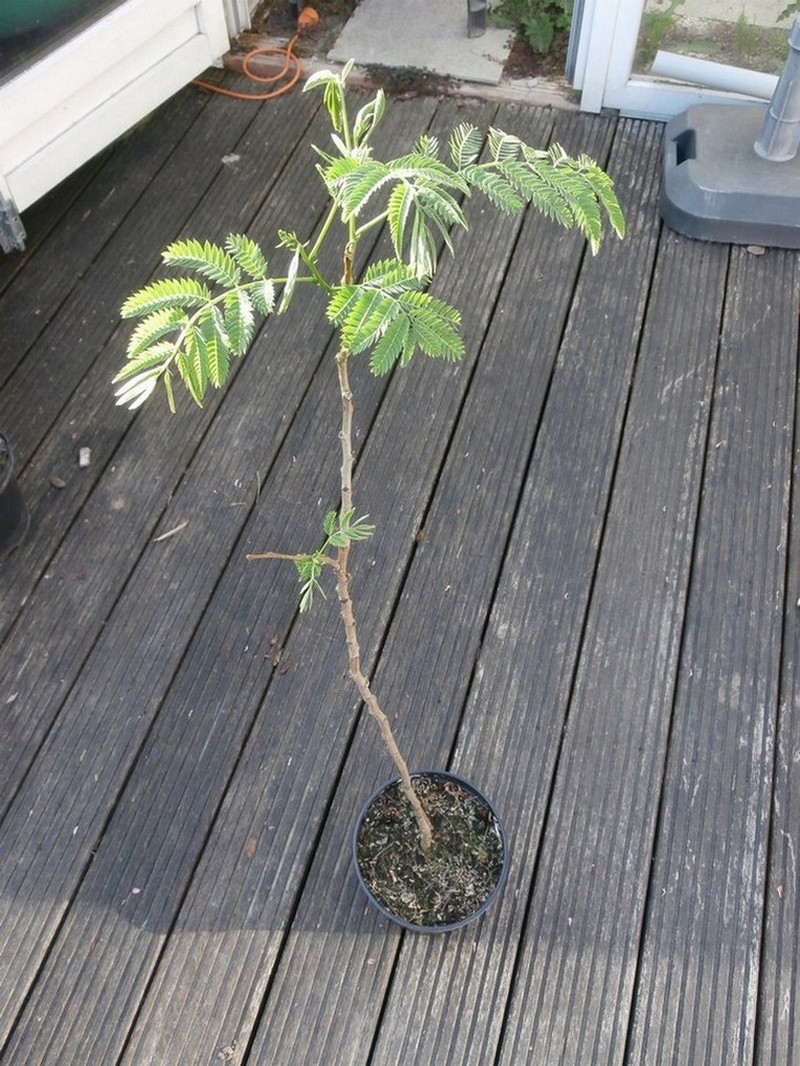 Ik heb de albizia in de serre gezet, zodat hij al een beetje kan groeien. (a)