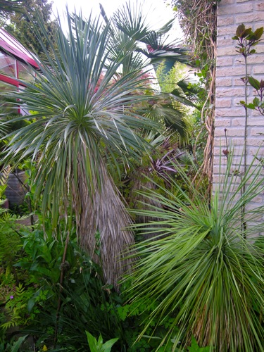 Dit is mijn Y. linearis in de voortuin, ook al weer pal tegen de gevel (noordoost) maar onder meer dan een meter dak-afstek en dus genadeloos droog het hele jaar door.