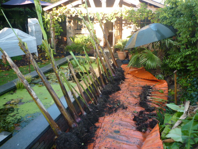 hallo ; na de koude nacht van zondag dan toch maar beslist van alles naar de winterstaling te doen. het was me weer een hele taak ,ik had ze liever nog wat laten staan maar als je ze plots s'avonds na je werk in het donker ze moet uitgraven en versleuren dan kom ik tijd te kort en vorig jaar stond alles er al 2weken er in en ook geen problemen gehad .enkel de robusta staat nog buiten om dat de luchtvochtighied binnen niet ze goed is (weet iemand de goede vochtigheid voor een robusta :?: ) volgnden keer zal ik beter na denken voor ik iets bij koop .olgend jaar mag hij de volle grond in maar eerst de winter door krijgen ik had meschien gedacht er een groote transparante zak er over te doen om zo de vochtigheid wat hoger te krijgen dan in de keuken met centeraleverwarming die nietgoed is blijkbaar voor de plant gewoon besproeien zou meschien ook kunnen werken het word nog een spannende winter