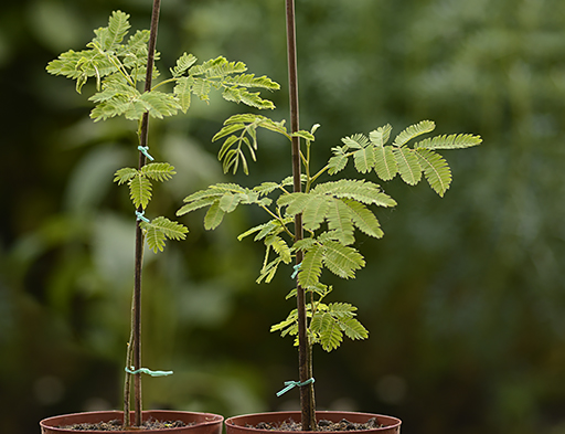 Dit jaar kwamen de groeipunten van de albizia's al vlug tevoorschijn.