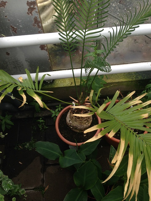 Ik zag deze planten in een tuincentrum zielig in hoekje gedrukt staan. Mij lijkt het duidelijk in de Cycadaceae of Zamiaceae familie te horen maar kan natuurlijk helemaal verkeerd zitten. Vermoedelijk zijn de bladeren hoog opgestoken door het lange staan in de kas.