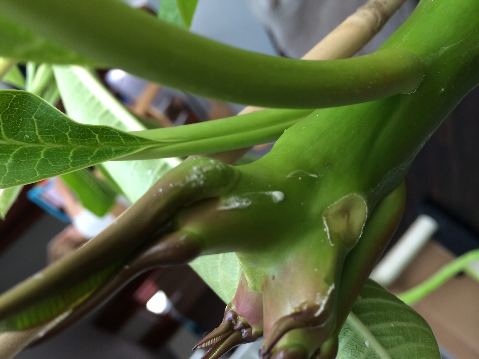 Hopelijk kan iemand me advies geven hoe ik mijn plumeria's kan "redden", want het gaat helemaal niet de goede kant uit en ik zou het ontzettend spijtig vinden om ze te verliezen. Behandelen tegen de ziekte waarvan ik niet weet wat het is (wolluis misschien?), alsnog ompotten in mengeling cactusaarde + perliet…?