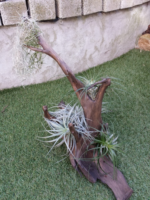 Van de week een stuk drijfhout opgehaald bij de rivier . Schors er af even opgeschud een beetje beits een paar mooie plantjes van Agnes en klaar
