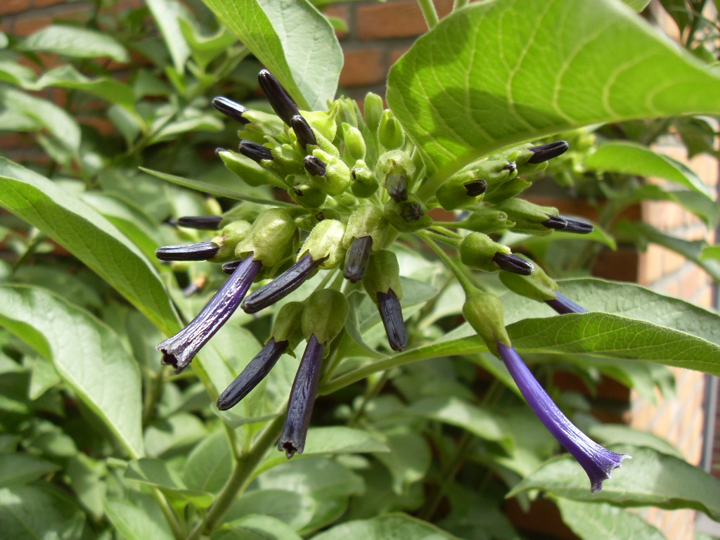 Iochroma naast citrus. De Iochroma staat vol met knoppen.