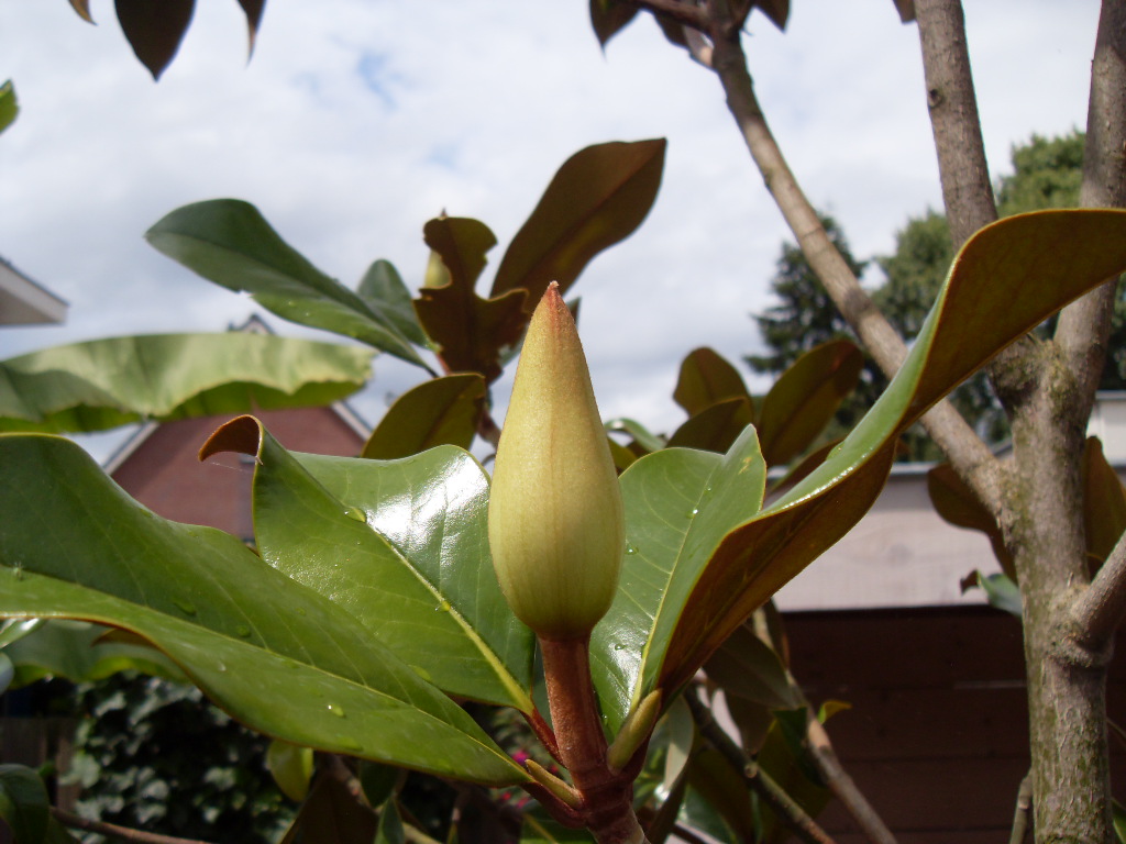 Een van de vele bloemknoppen in Magnolia grandiflora