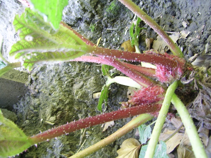 De latere foto's zijn ook weer twijfelachtig. Volgens mij geen manicata (stekels, stengel kleur en blad aanzet kloppen niet) maar hij heeft wel een zeer vlak staand blad en rood groeipunt voor tinctoria.