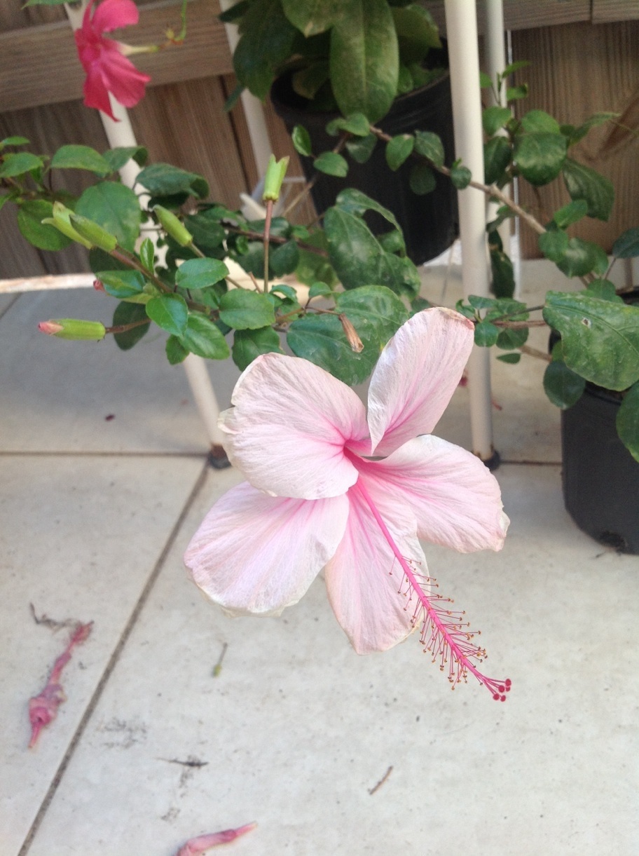 die met de roze bloem: Hibiscus rosa sinensis (ondersoort weet ik niet)