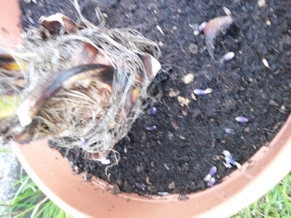 ik heb vanmorgen gezien dat ik rare beestjes op de bladeren van mijn Trachycarpus wagnerianus , ook op de grond in de pot liggen er , ik zie wel geen beweging zijn ze nu dood of niet , ik weet niet wat het is , paar palmvrienden weten het ook niet en bij de aveve konden ze me niet helpen dus smijt ik het hier maar sorry als de foto's niet heel duidelijk zijn , mijn gsm is ook niet van de beste
