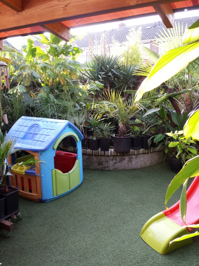 Even jouw topic doorgelezen/gekeken, Ron. Je tuintje is prachtig geworden, mooie foto's van mooie vormen, mooie planten, mooie bloemen en alles lekker vol! Maar... inmiddels is je dochter 4 1/2 ?? Misschien tijd om die groene vloerbedekking eens te vervangen voor iets wat (volgens mij) veel beter in je tuin past, namelijk gewoon echt gras