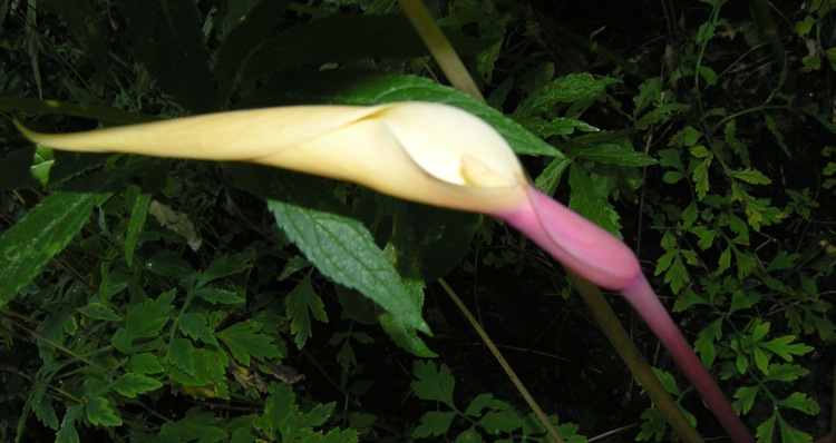 Colocasia esculenta 'Pink China' bloeit op dit moment. Waarschijnlijk is dat niet heel bijzonder. Mijn ervaring met leden van het geslacht Alocasia is dat wanneer ze eenmaal beginnen te bloeien, er gaan houden aan is. Of dat ook bij deze Colocasia het geval zal zijn.....?