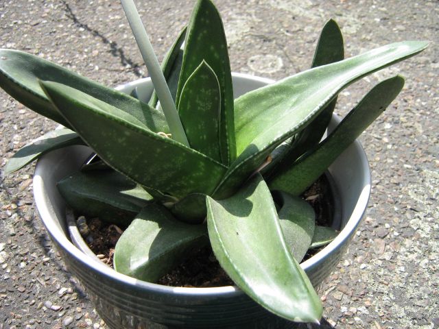 Het is een Gasteria. Ben niet goed in de soortnamen ervan. Mogelijk croucheri. Mocht op dit forum niemand de soortnaam weten, post dan de foto op Planet Gasteria op Facebook. Daar is Cok Grootscholten actief. Is zeer goed in het determineren van de soorten en heeft bovendien de meest uitgebreide Gasteria collectie van de planeet.