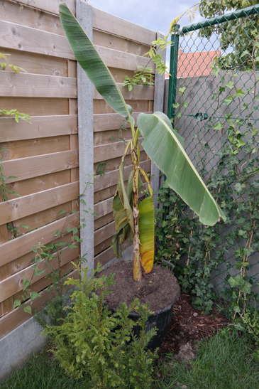 Ik heb de musa (wat er jammergenoeg nog van overschiet na de storm) dan maar op een windvrije plaats gezet, en zal hem niet meer ingraven zodat ik hem deze winter in de garage kan zetten.