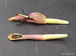 Slechts de eerste paar handen (hoeveel afhankelijk van soort) zijn de vrouwelijke bloemen die uiteindelijk uitgroeien tot de vingers (vruchten).