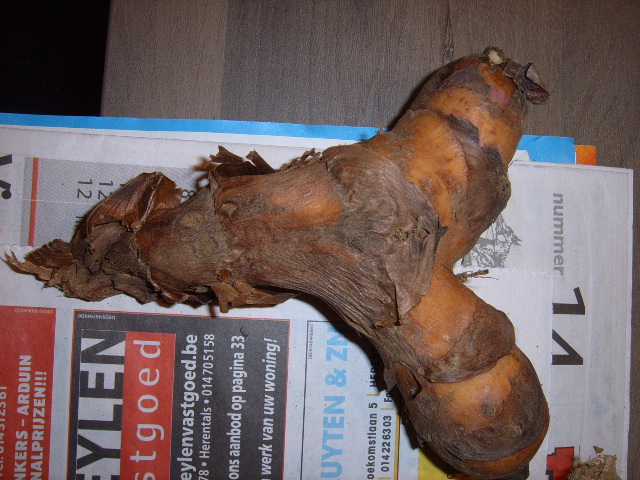 Zo heb ik hier een grote pol van C. Russian Red die we in het najaar met 2man uit de grond moeten tillen, maar deze wordt wel 2,5m hoog , tegenover de kleinere en zeker de pas gedeelde knollen die op 1,5m blijven steken.