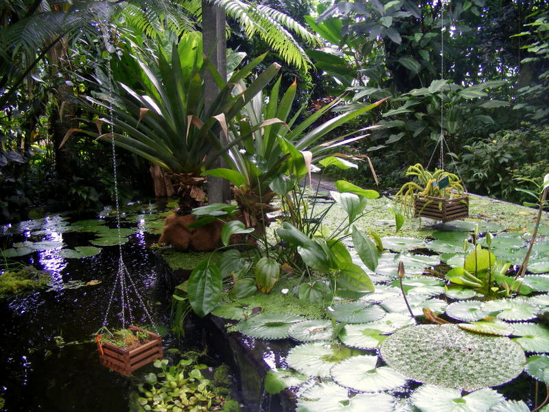Ik denk wel dat we dezelfde Cocos voorhebben Sylvan. Deze stond in mijn herinnering op deze plek en was toen net begonnen een stam te ontwikkelen. De groei zal niet zo snel zijn omdat de tropische kas op een temperatuur van om en nabij 22 °C wordt gehouden en de lichtcondities evenmin optimaal zijn voor deze palm. Te zien ook aan de slanke stam. De varen bij de vijver lijkt mij Angiopteris evecta, die voorheen in een kuip boven het water stond opgesteld. Het lijkt erop of deze inmiddels in de aarde staat ? De Marattia een met Angiopteris verwante varen (Marrattiaceae) is misschien wel verdwenen. Er stond indertijd ook een Trachycarpus in de koude kas, maar die zat toen al tegen de nok aan. In de tropische kas zijn in de loop der jaren om vergelijkbare reden ook andere palmen gesneuveld zoals een Howea forsteriana en een Caryota mitens. Mogelijk ook is de laatste door bloei te gronde gegaan. De Caryota en enkele ander palmen (Aiphanes, Socratea) waren van mij afkomstig. Een aantal daarvan zijn na verloop van tijd naar Burgers verhuisd omdat ze niet in de collectie pasten.