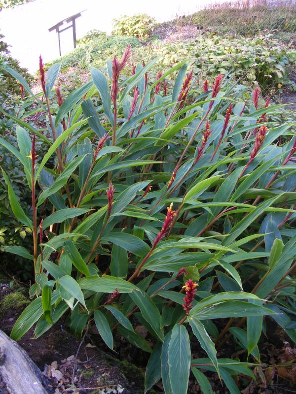 Ik heb wel een Caryota mitis ontdekt iets voorbij de bromelia in bloei richting de uitgang van de kas. deze was omgezaagd iets boven de bloeiwijze. De Angiopteris evecta staat inderdaad in de volle grond.