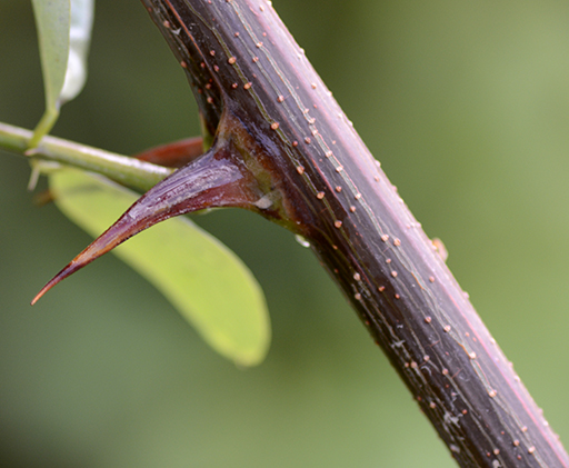 Ik heb hem als grote boom ook in Turkije gezien en die hadden ook allemaal stekels aan de takken, waren beste jongens, kan je je goed aan bezeren denk ik.