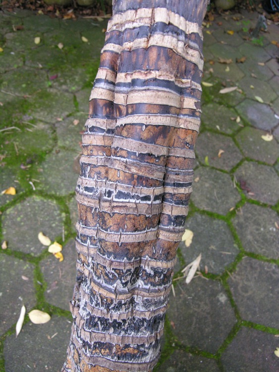 Klopt Wim, ik heb er nog geen afstand van kunnen doen :? . Ik heb de koudetolerantie van deze palm overschat :( , de vorstvrije overwintering bleek desastreus uit te pakken en de Howea verloor vrijwel al zijn veders :oops: . Binnenshuis leek enige tijd herstel op te treden met de ontwikkeling van nieuwe bladeren :P , maar na een paar jaar voortsukkelen raakte de fut eruit. :shock: De opvolger is ondertussen in de maak, over 30 jaar 8-) hoop ik weer zo'n stam te kunnen bewonderen :lol: