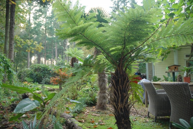 De (boom)varens, palmen en Japanse esdoorns combineren op een natuurlijke wijze met het omringende bos. Dit zijn ook mijn favorieten in de tuin. De banaan daarentegen maakt op mij een ontheemde indruk. Maar ik heb dan ook geen enkele affiniteit met deze plantengroep :thumb_up: