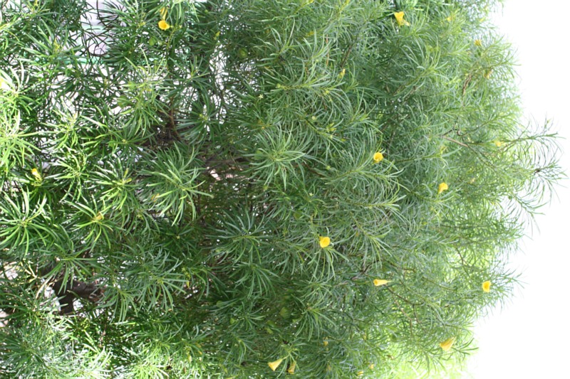 Parapluvormig boomje met gevederd blad en peulvruchten