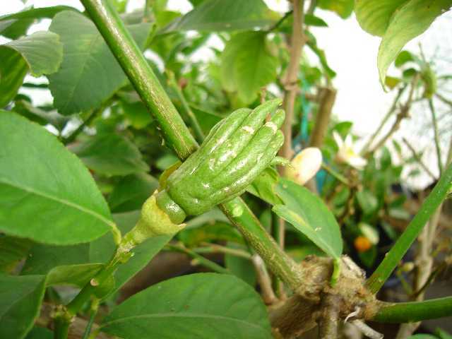 Mijn andere citrussen (31 stuks) staan in de verwarmde kas waar de minimum temperatuur om 7°C staat ingesteld. Ik heb trouwens ook een Cedro hangen die wellicht naar de 1Kg gaat (Citrus medica "Diamante"). De Boedha's Hand is trouwens ook een variant van de Citrus medica (benaming: "Fingered", var. sarcodactylis of var. digitata). Mijn Cedro is 2m hoog en naar schatting ook 10 jaar oud.