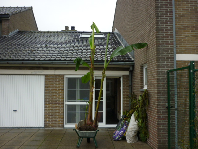 deze nacht de eerste grond vorst in vlaanderen . daarom is gisteren bijna alles in de winterstaling gegaan en de rest ingepakt .het word de eerste winter voor de robusta ik heb de thermostaat op 1graad gezet ,zodra hij er onder komt schiet de gloeilamp en de warmteblazer aan tot hij weer die 1 graad bereikt. hopelijk word het de zelfde winter als vorig jaar. ik heb dit jaar ook een terras rond het tuinhuis geplaatst ,wel vijf jaar te laat maar ja , alles op zijn tijd .de scheuten van de basjoo's waren dit jaar behoorlijk groter dan andere jaren