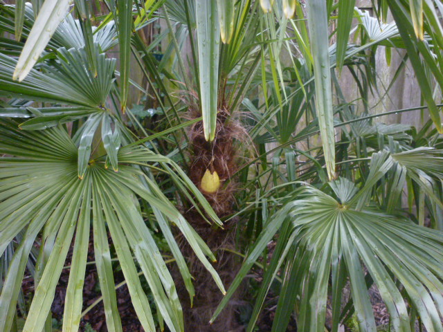 trachycarpus winsan bloeit voor het eerst met 5 knopen ,de fortunei ook met 3bloemen .hopelijk een van elk één