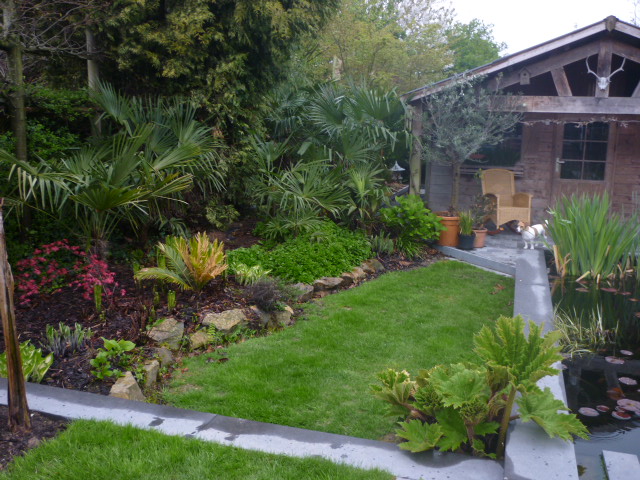 Mooie tuin zeg. Ik vind het een sjiek geheel. De stam van je Washingtonia valt me op. Dat gaat me een reus worden. :thumb_up: