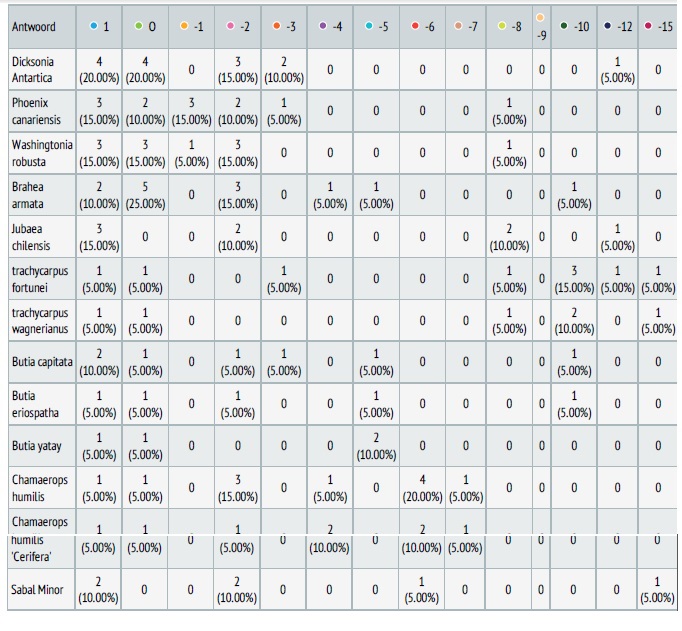 Gelieve dit enkel in te vullen op de manier dat je persoonlijk goede resultaten behaald hebt (dus geen info van derden of internet). De planten waar je geen ervaring mee hebt kan je openlaten.