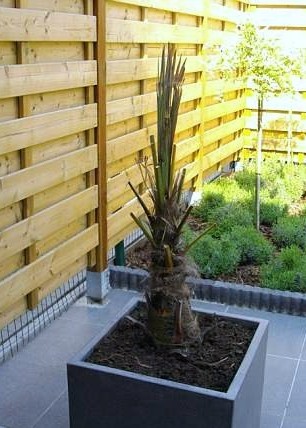 Ik heb een palm in een grote stenen bloembak staan.(zie bijlage)
