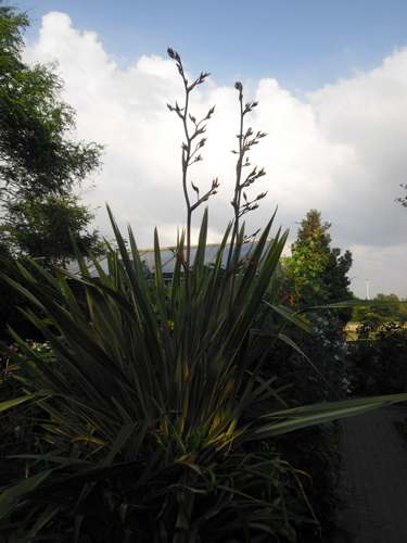 Als de Phomiums deze winter overleven zal ik toch moeten ingrijpen, ze worden toch wat groot en te zwaar, dus een zware klus om deze knapen te scheuren(doorzagen), grotere potten is geen optie daar de terrasjes niet meegroeien en de tuin ook niet.