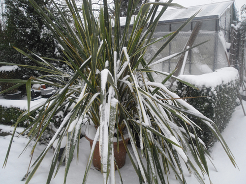 De grotere tenax hebben geen plaats meer binnen en moeten tegenwoordig buiten overleven, alles op een hoopje aan de zuiderkant van het huis, moest het toch fel gaan vriezen dan kan er nog een noppenfolie rond en plaats ik er tijdelijk een halogeenstraler (100w) ertussen, lukt dit niet meer...helaas compost.