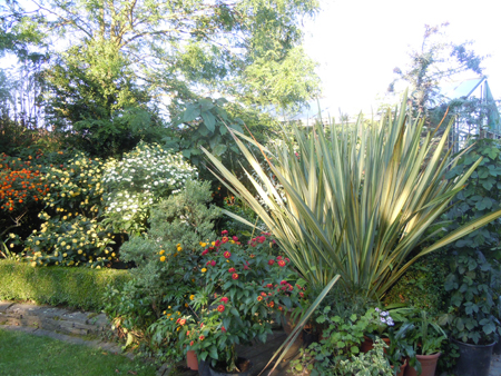Als de Phomiums deze winter overleven zal ik toch moeten ingrijpen, ze worden toch wat groot en te zwaar, dus een zware klus om deze knapen te scheuren(doorzagen), grotere potten is geen optie daar de terrasjes niet meegroeien en de tuin ook niet.