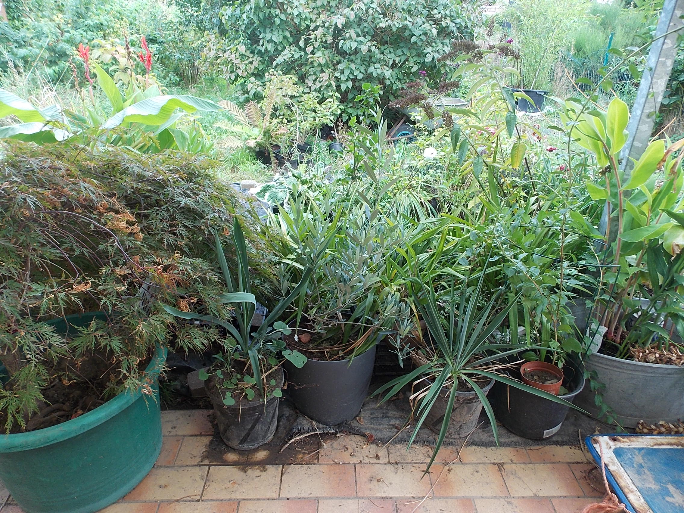 de palmen staan niet op de foto's, dit zijn alleen de foto's van de vaste planten. Daarnaast heb ik nog wat Canna's en bloembollen in de kelder liggen.