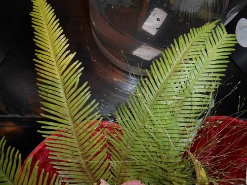 Het palmblad lijkt me afkomstig van Phoenix roebelenii.