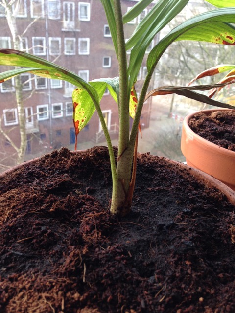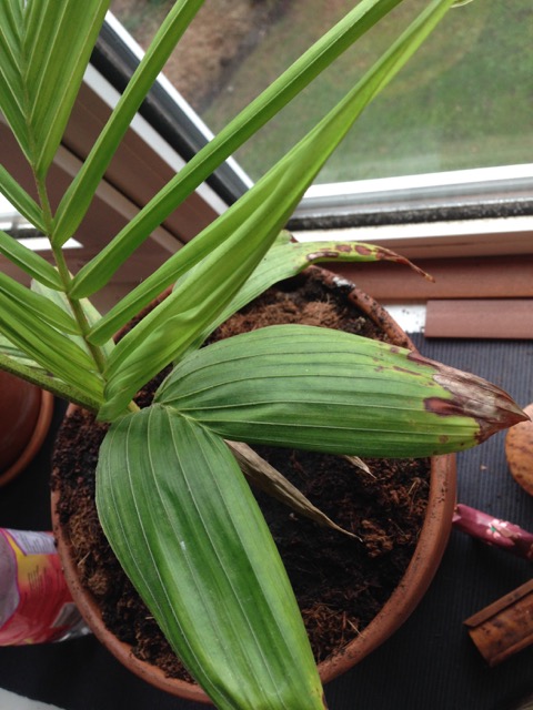 De onderste bladeren van een Archontophoenix zojn eigenlijk nog de kiembladeren, voordat het vederblad zich gaat splitsen. Deze kiembladeren bruinen vrij snel bij een Archo. Niet een teken om je zorgen over te maken. Je kan het zien aan jet gesplitste blad op foto 1. Die ziet er al een stuk beter uit.