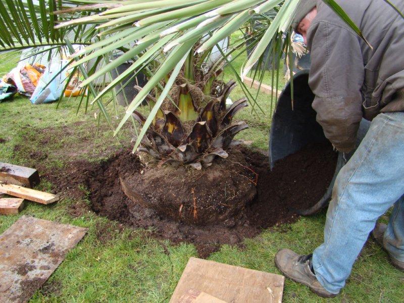 De jubaea is aangekocht bij Exotica in Herenthout. Ik had die vorig jaar al gezien, maar de toenmalige eigenaar kon hem niet meer brengen. Dirk, de huidige eigenaar geeft wel deze service, dus hebben ze hem naar huis gebracht.