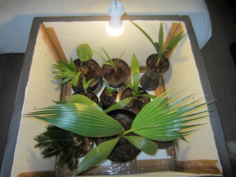 Op uitzondering van Cycas die niet veel meststof kan verdragen, helpt blauwe korrel en een afkooksel van rijst (restwater) bij jonge palmen, ook de pot speelt een rol. Ik verkies een ruime terracotta pot met afwatering zodat de wortels vrij kunnen groeien en niet teveel water geven anders zou speerrot (misschien!) iets meer voorkomen bij de Chinese palm t.o.v. de controlegroep.