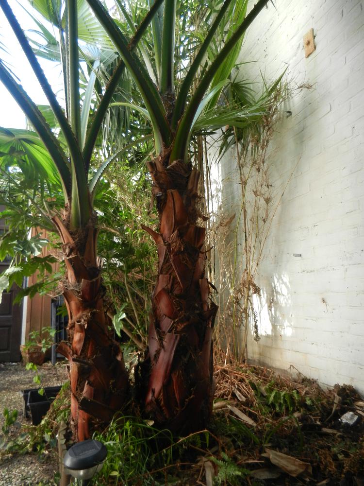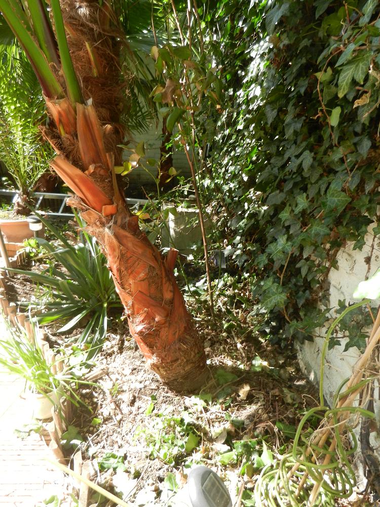 eddie t schreef:Een plaatje van 1 van m'n Washingtonia's, staat in de tuin in Den Haag sinds mei 2008. De eerste winter niets gedaan aan bescherming, daarna een lichtslang en afdak. Dat werkt prima, ook na feb 2012 geen schade door de vorst. Wel altijd veel windschade, bladeren worden door de wind behoorlijk gescheurd soms.