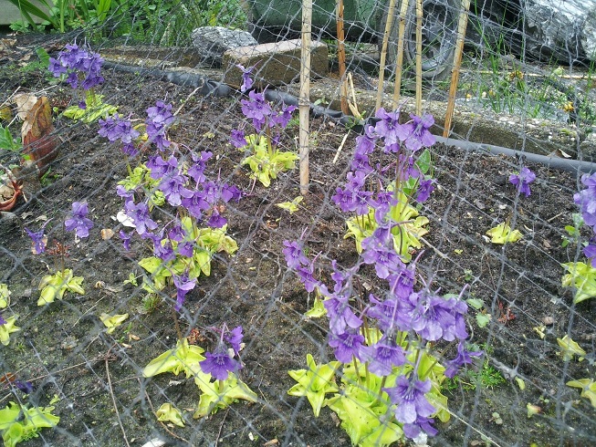 Eerst een paar foto's van 10 april als ik me niet vergis. Camellia begon midden in zijn eerste winter al vrolijk te bloeien en gaat nog steeds door. Tetrapanax rex is ook al lekker op gang. Voor mijn verjaardag een Passiflora caerulea gekregen. Deze op 10 april aangeplant. Op 26 april is hij dus al zo'n 15 cm. gegroeid want de mazen van het hek zijn 10x10cm.